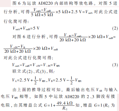 圖5為電壓輸出采集電路,M、N兩點間的電壓接運放AD8220,再經運放OP1177處理后,得到輸出電壓VoutA、VoutB,此電壓最后接色譜工作站或接AD轉換器和單片機進行處理,可檢測物質的成分和含量。