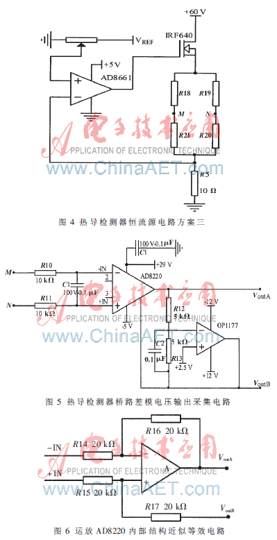本文對三套恒流源進行分析、比較、實驗,表明方案一的基線噪聲、溫度漂移小,優于現有色譜儀熱導檢測器的指標,而且電橋檢測電路承受的共模電壓小,有利于保護檢測電路。