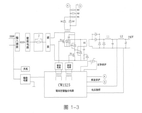 通過以上簡單原理介紹,我們就可以對開關電源的檢修有一定的幫助?,F在我以圖1- 3為參考介紹一下開關電源的幾種簡單維修方法: