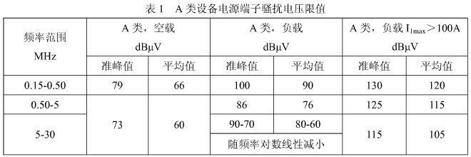 要想讓逆變焊機內(nèi)部產(chǎn)生的電磁騷擾徹底消除是不可能的, 我們只要使焊機符合 GB15579.10 標準的要求就可以了,電源端子騷擾電壓的限值見表 1。IGBT 逆變焊機通過空載試驗一般都沒有問題,焊機負載狀態(tài)(I1max≤100A)的騷擾電壓限值見表 1 的 A類。
