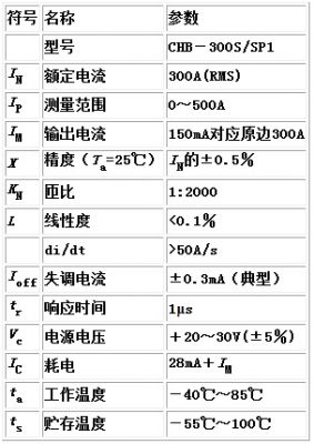 表1 CHB-300S型霍爾傳感器的主要性能參數(shù)