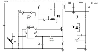 在應用過功率保護方面,傳統技術屬于耗散型 OPP,因為在待機時 OPP 電路仍然工作,使適配器的輕載及待機能效性能受到影響。NCP1250/1 使用獨特的非耗散型 OPP 方案,僅要求使用 2 顆電阻,對輕載能效性能沒有影響。
