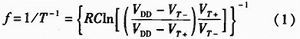 全橋DC-DC電源參數為:輸入+15 V;輸出+15 V、-10 V;輸出功率6 W;工作頻率360 kHz。要求額定負載下動態特性、滿足:+15 V波動<+1 V;-10 V波動<-2V;工作頻率滿足5%的偏差容限。其中工作頻率由施密特觸發器CD40106參數及RC數值決定。具體參數為:R=2.2kΩ;C=748 pF;VDD=15 V;VT+=8.8 V;VT-=5.8 V。根據式(1)計算出振蕩頻率為748.792 kHz,因為設計中多諧振蕩器輸出對2路RC充放電,充電電容容量增大一倍,因此振蕩頻率為上述計算頻率的1/2,即374.396kHz。