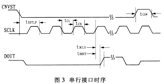 啟動轉(zhuǎn)換和讀數(shù)據(jù)操作由CNVST和SCLK端的數(shù)字輸入信號控制。圖3示出時序關系,描述串行接口的工作方式。