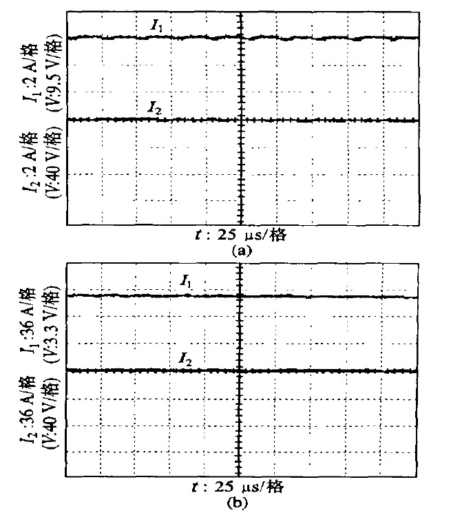 圖5 示出不同充電電壓時的充電電流波形。由圖可見,在不同充電電流給定下均取得了良好的實際充電電流波形,并且當(dāng)蓄電池電壓變化時,因在線的變參數(shù)PI 調(diào)節(jié),充電電流保持恒定,因此系統(tǒng)具有良好的動態(tài)性能和恒流特性。目前該充電電源己在多艘大型船舶中使用。