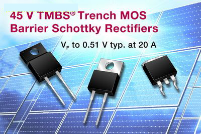 Vishay發(fā)布12個(gè)采用不同封裝的45V TMBS® TrenchMOS勢(shì)壘肖特基整流器器件可用于光伏太陽能電池旁路保護(hù),具有10A~40A的寬額定電流范圍,在20A電流下的典型VF低至0.51V。