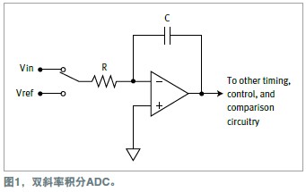 傳統上精密的SMU(信號源測量單元)均采用了積分式的模擬/數字變換器(ADC),這可以讓信號在一定時間間隔(稱為積分時間)內平均。圖1描述了一種經過簡化的雙斜率積分ADC,其基本工作原理是用未知的信號對電容充電,然后在基準電壓下讓電容放電。充電和放電的時間的比例與未知信號與基準信號間的比例成正比。雖然這一ADC技術可以提供很高的精度和對噪聲的出色耐受能力,但電容的充電-放電循環會造成測量的間隔過長(至少50µs),這會讓測量速度大大降低。相比之下,高速ADC能夠以高達1MHz的猝發速率來對信號進行采樣。與積分ADC不同的是,這些高速的ADC采用了類似于示波器的采樣技術,即可以獲取隨時間變化的信號的快照。它們可以提供高于示波器的分辨率(分別為18位和8位),從而可以以與之相當的帶寬來完成更精確的瞬態特性測量。