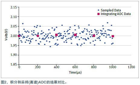 圖2示出了積分和高速ADC所獲取的結果之間的差異。雖然高速的ADC可以返回更多的讀數,但這些測量的精度和可重復性要低于使用積分ADC所完成的測量。要求更高吞吐率的應用可以容忍較低的精度,或者,可以通過對若干次讀數的平均來改善其精度。一般情況下,采用積分速率為0.01PLC或者更高的積分ADC進行的測量可以達到的精度,相當于采用高速ADC所達到的精度。更新的、集成了兩個高速ADC的SMU設計可以同時完成電壓和電流的測量。采用這些技術時,同時具備高速ADC和先進的觸發模式的特點則可以支持對脈沖信號的精確時變特性測量。例如,吉時利的2651A型大功率系統SourceMeter儀器可以完成與源操作異步的測量,例如可以在脈沖之前、脈沖過程中或者脈沖之后來進行。