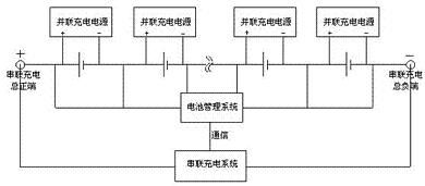 但是并聯充電方法需要采用多個低電壓、大電流的充電電源為每一只單體電池充電,存在充電電源成本高、可靠性低、充電效率低、連接線徑粗等缺陷,因此目前沒有大范圍使用這種充電方法。