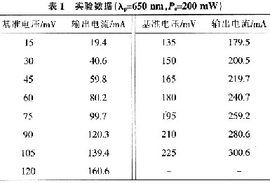 圖5結果表明基準電壓與輸出電流成正比例關系,通過調節基準電壓,可以改變LD的輸出功率,即LD輸出功率連續可調。