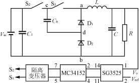 為提高電路的效率及功率器件工作的可靠性,一般需要將控制電路的輸出信號加以功率放大。本文采用MC34152加隔離變壓器驅(qū)動的方法來設(shè)計驅(qū)動電路。
