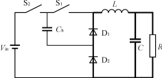 模態(tài)3:如圖2(c)所示。直至t=t2時刻,控制電路使S1導(dǎo)通,二極管D1則反偏截止,隔直電容Cb向電感L放電。