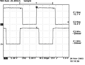 從圖6中可以看出,采用上述分立元件實現(xiàn)PWM Buck三電平變換器的控制是切實可行的。
