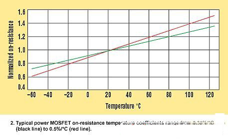 對于開關(guān)MOSFET和同步整流器兩者,都是選擇作為此迭代過程開始點的最大允許裸片結(jié)溫(TJ(HOT))。大多數(shù)MOSFET數(shù)據(jù)參數(shù)頁只給出25°C的最大RDS(ON),,但近來有一些也提供了125°C的最大值。MOSFETRDS(ON)隨著溫度而提高,通常溫度系數(shù)在0.35%/°C至0.5%/°C的范圍內(nèi)(圖2)。如果對此有所懷疑,可以采用更悲觀的溫度系數(shù)和MOSFET在25°C規(guī)格參數(shù)(或125°C的規(guī)格參數(shù),如果有提供的話)計算所選擇的TJ(HOT)處的最大RDS(ON):RDS(ON)HOT=RDS(ON)SPEC×[1+0.005×(TJ(HOT)?TSPEC)]