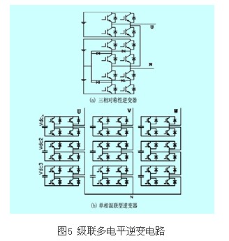 多電平逆變器實現(xiàn)的結(jié)構(gòu)一般主要有:二極管箝位型(diode-clampedinverter)、飛跨電容箝位型(flying-capacitorinverter)、具有獨立直流電源的級聯(lián)型(cascaded-inverters with separate dcsources)、具有多繞組變壓器輸出的多重化型等等。