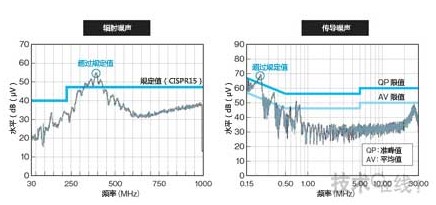 EMC規(guī)定中定義了輻射噪聲和傳導噪聲兩種電磁噪聲的測量,LED燈泡也不例外。有的LED燈泡產品的噪聲超過了CISPR15的規(guī)定值(準峰值:QP和平均值:AV)。