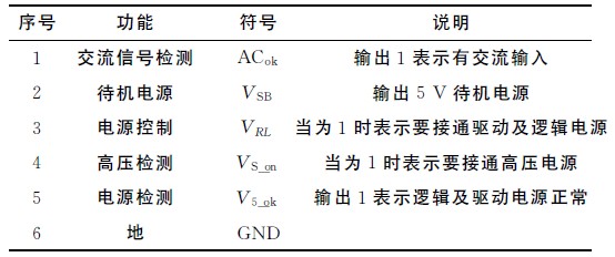 控制電源與數(shù)字電路CPU 通過(guò)6針端子相連,如表2所示。