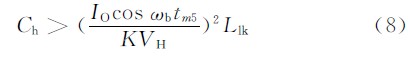 所以Ch的大小要滿足式(8),但Ch過(guò)大又增加了給Ch充電的環(huán)流,而且Ch要保證在原邊向副邊傳送能量結(jié)束之前充電結(jié)束。所以Ch應(yīng)該在保證零電流開(kāi)關(guān)情況下盡可能小。