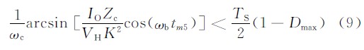 為了保證有足夠的能量來(lái)使超前橋臂的開(kāi)關(guān)管外部并聯(lián)的電容充、放電。則(3)式中: