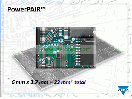 PowerPAIR就是這樣的一種封裝類型,這種封裝的外形尺寸比單片功率6 x 5封裝 (PowerPAK SO-8)小,最大電流可以達到15A。在筆記本電腦中,一般象這么大的負載電流都會采用兩個功率6 x 5封裝,算上導線和打標簽的面積,以及兩個器件的位置擺放,占用的面積超過60mm2。這種雙芯片功率封裝的尺寸是6.0mm x 3.7mm ,在電路板上占用的面積為22mm2。能把電路板空間減少63%對電源工程師是很有幫助的,因為他們給電源電路設計的空間是越來越少了。用傳統的SO-8雙芯片功率型封裝,是沒法取得這么大的好處的。