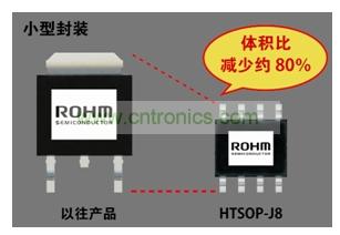 HTSOP-J8封裝(6.0mm×4.9mm H=Max 1.0mm),與以往產品相比,體積減少約80%。