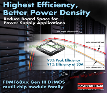 當(dāng)能效標(biāo)準(zhǔn)逐漸成為電子產(chǎn)品新的緊箍咒,各大電源半導(dǎo)體廠商不得不面對電源管理技術(shù)的全新挑戰(zhàn)。飛兆半導(dǎo)體 FDMF68xx Gen III DrMOS多芯片模塊(MCM)系列經(jīng)設(shè)計能夠降低輸出感量和減少輸出電容器數(shù)目,與普通分立器件解決方案相比,該系列能夠節(jié)省多達50%的線路板空間,并提高效率,以期滿足新能源標(biāo)準(zhǔn)要求。使用飛兆半導(dǎo)體的高性能PowerTrench® MOSFET技術(shù),F(xiàn)DMF68xx系列能夠顯著減少開關(guān)振鈴(switch ringing),省去大多數(shù)降壓轉(zhuǎn)換器應(yīng)用中使用的緩沖器電路。FDMF68xx系列配合針對刀片式服務(wù)器、高性能筆記本電腦、游戲主機和負載點(point-of-load)模塊的新能源標(biāo)準(zhǔn)和系統(tǒng)規(guī)范,正在推動業(yè)界對更高效率、更大電流、更高開關(guān)頻率以及更大功率密度的需求。