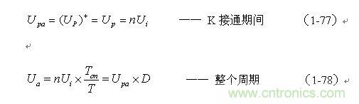 (1-76)式就是計(jì)算單激式變壓器開關(guān)電源輸出電壓的表達(dá)式。式中,Upa和Upa-分別稱為單激式變壓器開關(guān)電源輸出電壓的正半波平均值和負(fù)半波平均值。