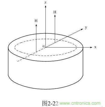 從圖2-19可以看出,磁場(chǎng)強(qiáng)度由H = Hz:和Hx = Hy = 0組成;對(duì)于電場(chǎng)強(qiáng)度,其指向平行于Y軸為E = Ey,Ex = Ez = 0。因此,上面兩式又可以改寫為: