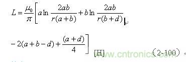 【說明】上式是用來計算變壓器線圈電感的計算公式。由于變壓器鐵芯的磁回路基本是封閉的,變壓器鐵芯的平均導(dǎo)磁率相對來說比較大。鐵芯的導(dǎo)磁率一般在產(chǎn)品技術(shù)手冊中都會給出,但由于大多數(shù)開關(guān)變壓器的鐵芯都留有氣隙,留有氣隙的磁回路會出現(xiàn)磁場強度以及磁感應(yīng)強度分布不均勻,因此,(2-103)式中的導(dǎo)磁率只能使用平均導(dǎo)磁率,技術(shù)手冊中的數(shù)據(jù)不能直接使用。
