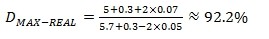 根據(jù)公式2,如果需要實現(xiàn)在VIN=5.7V下,保證VO=5V。 那么最大占空比為,![]()
