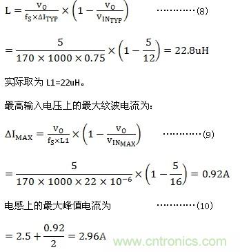 用NCV8852設(shè)計USB電源,輸入電壓范圍VIN=5.7~16V,典型值VIN_TYP=12V, 輸出電壓VO =5V, 輸出電流IO=2.5A, 工作頻率fs=170kHz.
