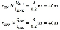 由QGD可先計算出MOSFET的開通關(guān)斷時間為: