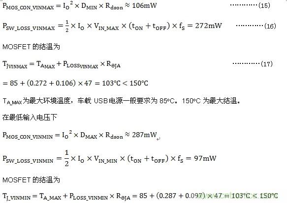 MOSFET承受的最高電壓為 VINMAX , 考慮到拋負載保護,選取耐壓40V以上的MOS。MOSFET的損耗,可由以下公式估算,