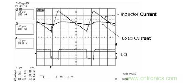 下圖說明了電感減小時,在輸出電壓的變化范圍內(nèi),負載電流的波動明顯增大。