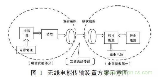 將直流電轉(zhuǎn)換成高頻交流電,然后通過沒有任何有有線連接的原、副線圈之間的互感耦合實現(xiàn)電能的無線饋送。基本方案如圖1所示。