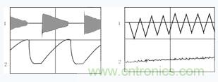 圖6為實測波形,(b)圖示出(a)圖的前幾個周期。圖中上部是變壓器原邊電源i1波形,下部是儲能電容U0的電壓波形,與圖3仿真波形對應(yīng)。由圖中看出,i1為零后,U0并未立刻下降,而是保持一段時間,這是因為充放電時間固定的緣故,當(dāng)U0達(dá)到預(yù)定值后保持至充電時間終了。