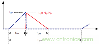 最大初級峰值電流IPP出現(xiàn)在啟動開始的時候,隨即UCC28700器件會進入恒流調(diào)節(jié)狀態(tài),保持0.425的恒定二次二極管導(dǎo)通占空比。