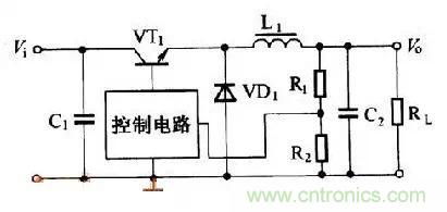 DC-DC就是直流-直流變換,一般有升壓(BOOST)、降壓(BUCK型)兩種。降壓式DC/DC變換器的輸出電流較大,多為數百毫安至幾安,因此適用于輸出電流較大的場合。降壓式DC/DC變換器基本工作原理電路如下圖所示。VT1為開關管,當VT1導通時,輸入電壓Vi通過電感L1向負載RL供電,與此同時也向電容C2充電。在這個過程中,電容C2及電感L1中儲存能量。當VT1截止時,由儲存在電感L1中的能量繼續向RL供電,當輸出電壓要下降時,電容C2中的能量也向RL放電,維持輸出電壓不變。二極管VD1為續流二極管,以便構成電路回路。輸出的電壓Vo經R1和R2組成的分壓器分壓,把輸出電壓的信號反饋至控制電路,由控制電路來控制開關管的導通及截止時間,使輸出電壓保持不變。