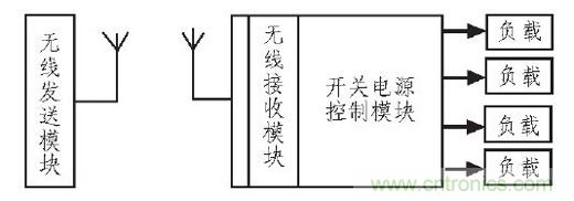 本系統由無線發送模塊、無線接受模塊和開關電源控制模塊3部分組成,其系統構成如圖1所示。