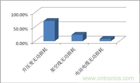 一般的,升壓變無功損耗所占總無功損耗的比例接近70% ,送出線路中的架空線產生的無功損耗占總無功損耗22%以上,光伏電站全部電纜線路產生的無功損耗所占比例約為8%;另外,電站的感性無功需求遠小于容性無功需求。