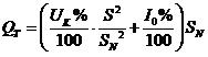 式中,QT 為變壓器無功損耗,kvar;UK %為變壓器短路電壓百分數,I0%為變壓器空載電流百分數;S為變壓器的視在功率,kVA;SN 為變壓器額定容量kVA。一般的,升壓變的短路電壓百分值為6.7%,空載電流百分值為0.4%。