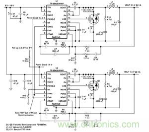 TPS54350是具有內部MOSFET的高效 DC/DC轉換器,連續輸出電流為3 A時,支持輸入電壓范圍為4.5~20V,可使設計人員直接通過中壓總線(而非依賴額外的低電壓總線)為DSP、FPGA和微處理器供電。TPS54350構成的DC/DC轉換器效率高達90%以上,非常適用于低功耗的液晶顯示屏、監視器、液晶電視機、硬盤驅動器、視頻圖像卡以及9V或12V墻式適配器的負載穩壓裝置。TPS54350的輸出電壓可調低至0.891V(精確度為1%);PWM 頻率固定為250kHz、500kHz或250~700kHz的可調節范圍,還具有完善的保護功能。因此,TPS54350符合系統設計要求。