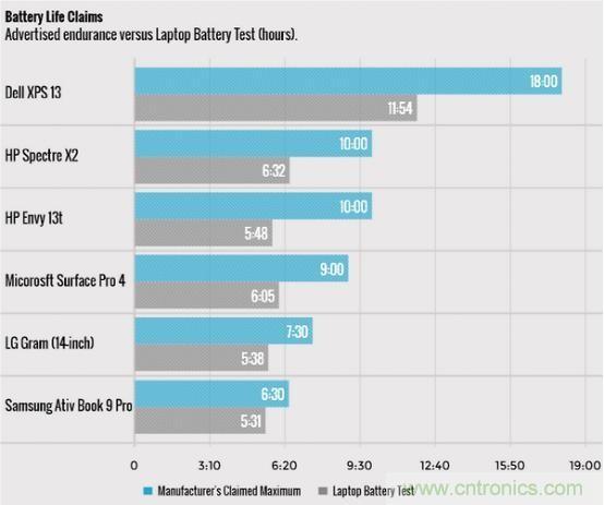 外媒Laptop Mag近日針對市場中主流筆記本進行了一項電池壽命比對測試,通過筆記本電池測試得出接近于現實使用環境下的電池壽命,再與官方宣稱的電池壽命相比對。