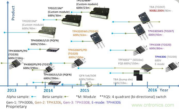 Transphorm依據(jù)基本發(fā)展路線圖進行開發(fā),首先是合格的600 V器件和1000V器件。Transphorm的研究和開發(fā)還在繼續(xù),現(xiàn)在推出了600V的擴展系列,采用更低的R(ON)設(shè)備和高功率封裝(含模塊),然后是繼150V器件之后的1200 V器件。據(jù)Eric透露,今年會推出900V和1200V的產(chǎn)品,低壓方面會提供150V的產(chǎn)品。據(jù)悉,未來Transphorm還將推出代替Cascode的E-Mode創(chuàng)新結(jié)構(gòu)技術(shù),將會把當(dāng)前結(jié)構(gòu)中存在的不利因素解決掉,實現(xiàn)更卓越的功率器件性能。將提供更大功率的產(chǎn)品,從2014年推出第一顆TO240,電流從30、40,逐步往60、70、80的方向發(fā)展。
