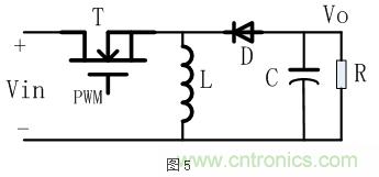 Buck-Boost電路拓?fù)洌袝r(shí)又稱(chēng)為Inverting,其典型的電路結(jié)構(gòu)如下圖5所示: