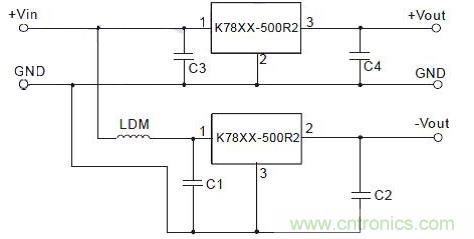 因此,用2只K7812-500R2的產(chǎn)品,實(shí)現(xiàn)BUCK與BUCK-BOOST電路相結(jié)合,可以得到±12V輸出,低的紋波和噪聲可以給運(yùn)放進(jìn)行供電。
