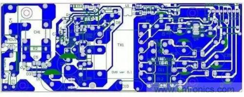 A)功率大電流地線(xiàn)與控制回路地線(xiàn)共用同一走線(xiàn),由于PCB覆銅線(xiàn)并非理想導(dǎo)體,它總是可以等效成電感或電阻,當(dāng)功率電流流過(guò)了和信號(hào)控制回路共用的PCB線(xiàn),在PCB上產(chǎn)生電壓降落,特別是采用多點(diǎn)接地時(shí),由于控制電路各節(jié)點(diǎn)分散在不同位置,功率電流引起的電壓降對(duì)控制電路疊加了擾動(dòng),使電路發(fā)出噪音,這問(wèn)題通常采用單點(diǎn)接地可以得到改善。