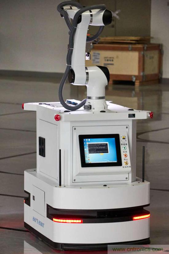 Star機(jī)器人是大族機(jī)器人產(chǎn)品線的一款明星產(chǎn)品,該機(jī)器人融合了大族自有的移動(dòng)機(jī)器人、機(jī)械臂、視覺(jué)系統(tǒng)、力控夾具等核心部件,可以實(shí)現(xiàn)手臂末端±0.2mm的重復(fù)抓取精度。機(jī)器人運(yùn)行過(guò)程中通過(guò)磁帶與激光SLAM混合導(dǎo)航,運(yùn)行靈活,機(jī)器人可以實(shí)現(xiàn)前進(jìn)、后退、原地轉(zhuǎn)向等動(dòng)作。機(jī)械臂臂展可以達(dá)到950mm。