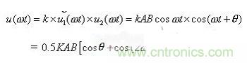 K為模擬乘法器的放大系數。進行低通濾波后濾掉交流成分得: