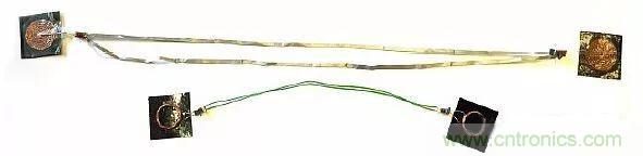 圖3:上方是用銅帶制作的柔性饋電線圈;下方是早期用24號硬線做的饋電線圈原型。